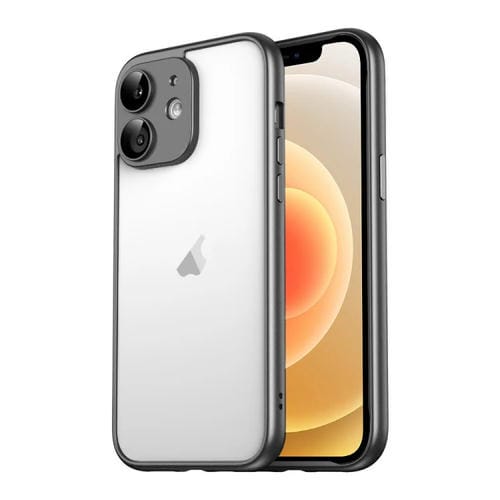 Funda para iPhone 12 Macaron PC Marco de Borde Puro con Película de Vidrio para Lentes (Negro)
