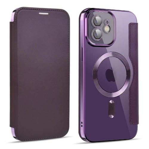 Funda para teléfono iPhone 12 Magsafe Magnetic Rfid Cuero Antirrobo (Púrpura Oscuro)