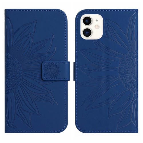 Funda de Cuero iPhone 12 Mini Skin Feel Sun Flower Pattern con Cordón (Azul Oscuro)