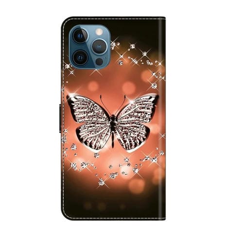 Funda Protectora de Cuero iPhone 12 Pro Max 13 Pro Max Crystal 3D a Prueba de Golpes (Mariposa de Cristal)
