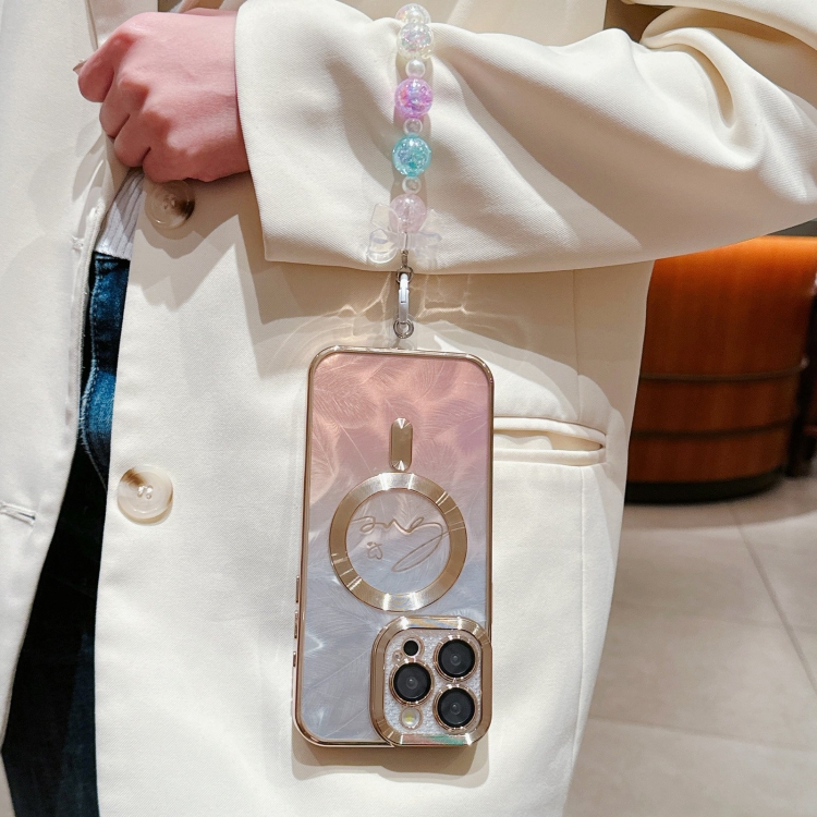 Funda para teléfono iPhone 12 Pro Max Dual-Love Feather Gradient Glitter Pulseras Magsafe TPU (Oro)