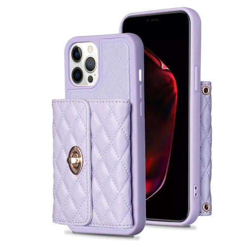 Funda de Cuero para iPhone 12 Pro Max Horizontal Metal Hebilla Cartera (Púrpura)