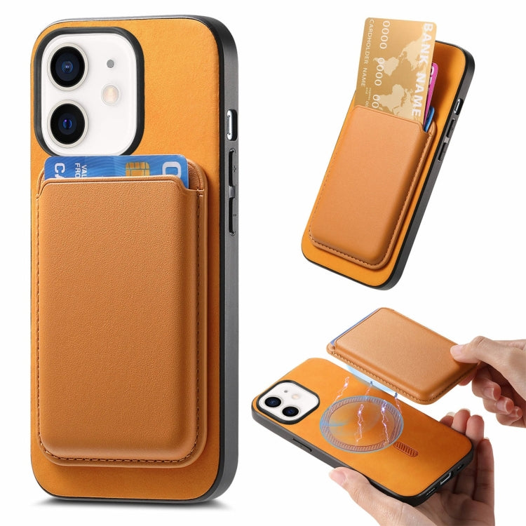 Funda para Teléfono iPhone 12 Retro Magsafe Card Bag Pu con Contraportada (Amarillo)