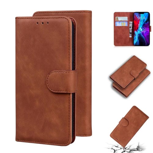 Funda de Cuero Flip para iPhone 12 Skin Feel Pure Color para Teléfono (Marrón)