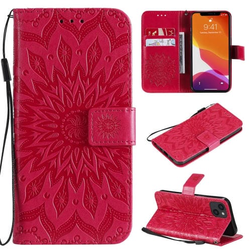 Estuche para iPhone 13 Cuero PU Flip Horizontal Patrón de Girasol Ranuras para Tarjetas Billetera y Cordón (Rojo)