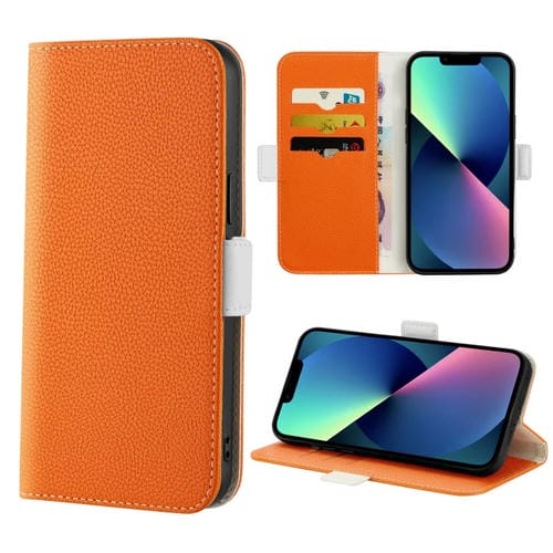 Funda para iPhone 13 Mini Candy Color Litchi Texture Leather Phone Case (Naranja)