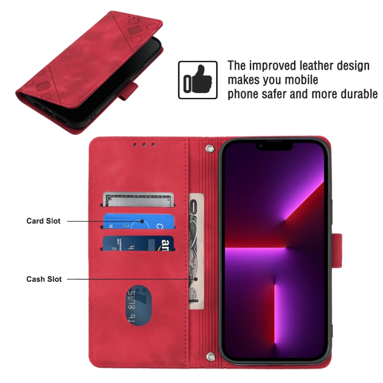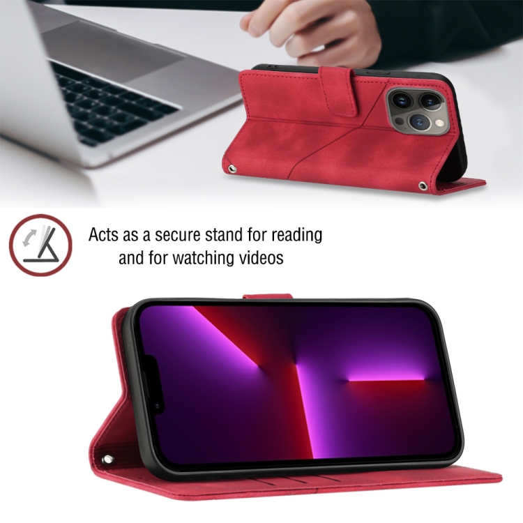 Estuche para Teléfono iPhone 13 Pro Cuero En Relieve con Tacto de Piel (Rojo)