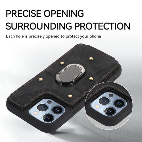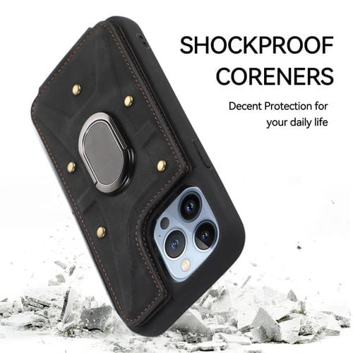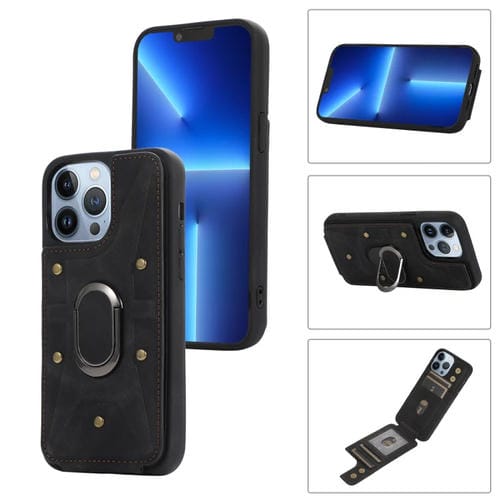 Pour iPhone 13 Pro Max Armor Ring Wallet Back Cover Phone Case (Noir)