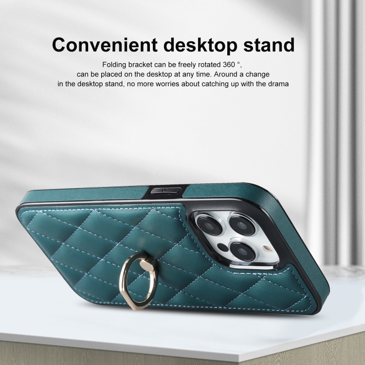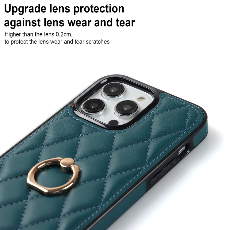 Funda para teléfono iPhone 13 Pro Rhombic PU Cuero con Soporte para Anillo (Verde)