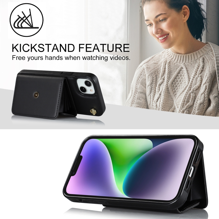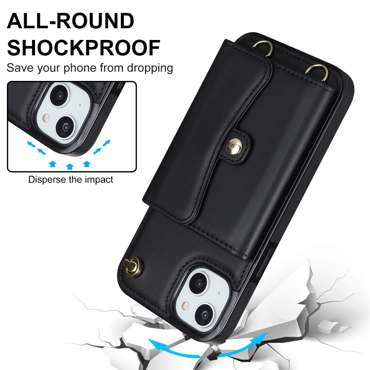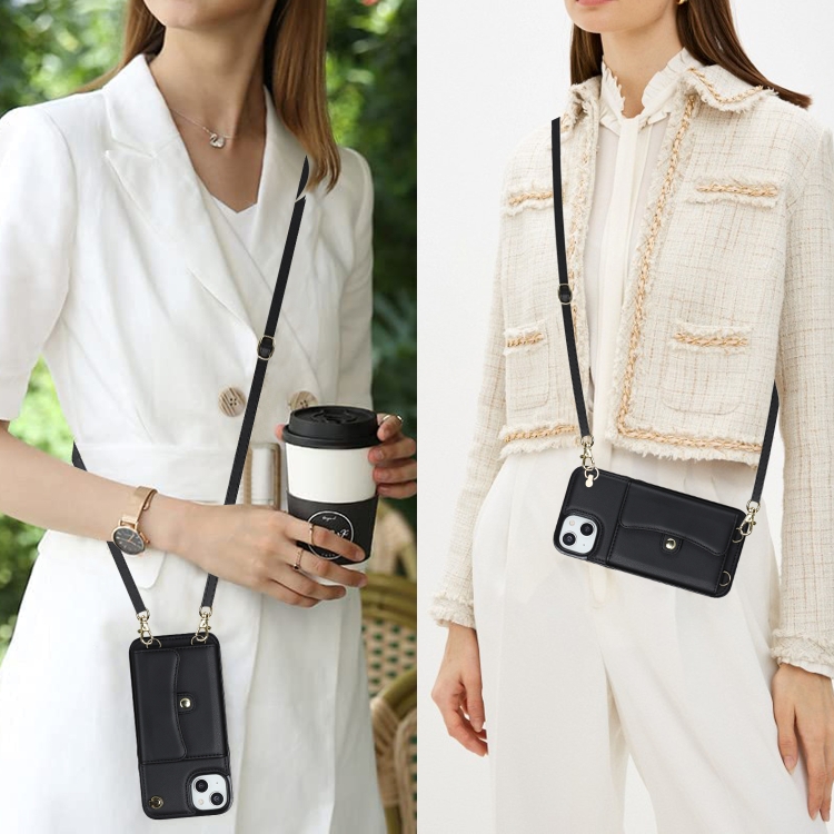 Estuche para Teléfono iPhone 14/13 con Ranura para Tarjeta Rfid y Cordón Largo (Negro)
