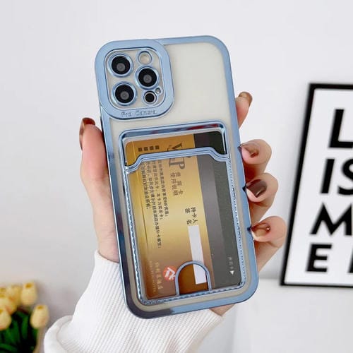 Pour étui de téléphone à fente pour carte iPhone 14 avec cadre de galvanoplastie (bleu)