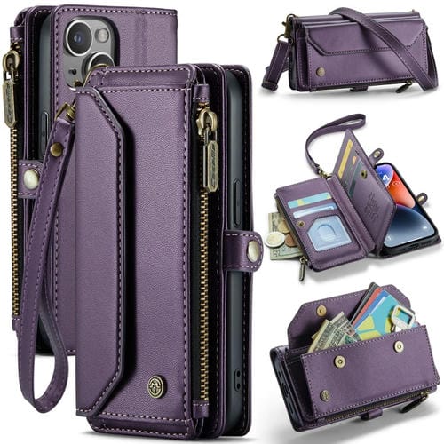 Funda para iPhone 14 Caseme C36 Cartera con Ranuras para Tarjetas y Cremallera Antirrobo Rfid (Púrpura)