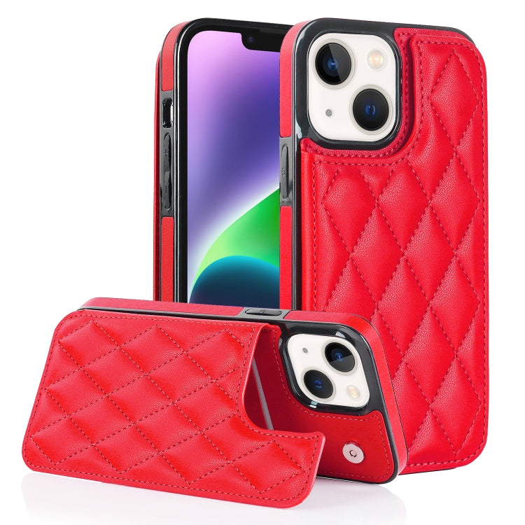 Estuche para Teléfono iPhone 14 Cuero Pu Rombal Doble Hebilla (Rojo)