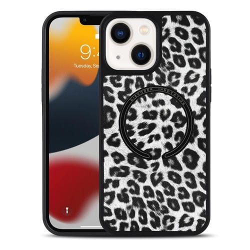 Funda de Teléfono iPhone 14 Magnética Magsafe Textura de Cuero (Leopardo Negro)