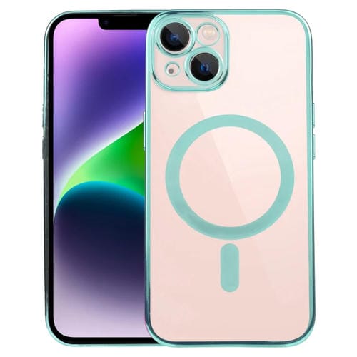 Funda para iPhone 14 Magsafe Galvanoplastia Straight TPU Phone Case (Verde)