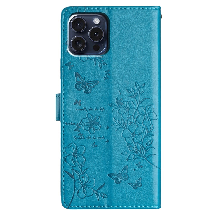 Funda de Cuero para iPhone 14 Pro Butterfly Love Flower En Relieve (Azul)