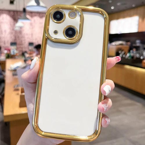 Funda de teléfono para iPhone 15 Plating Emery PC Silicona híbrida (Blanco)