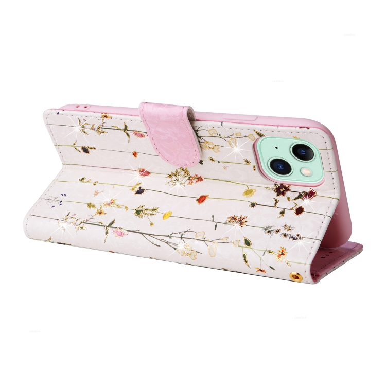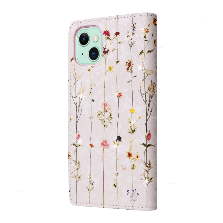 Funda de Cuero RFID para iPhone 15 Plus con Pintura Bronceadora (Mundo de Flores Secas)