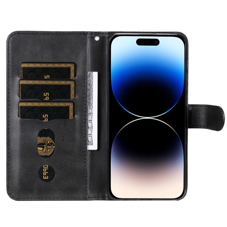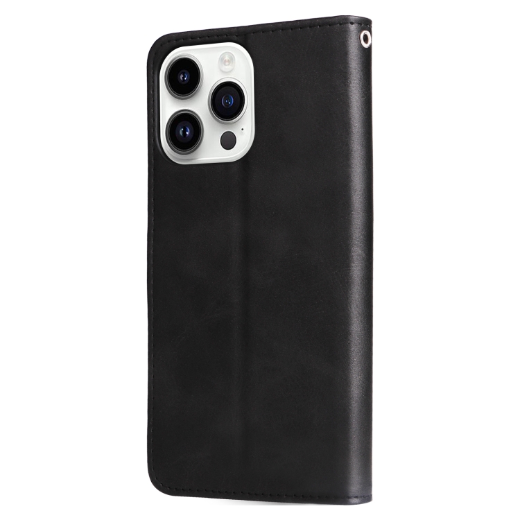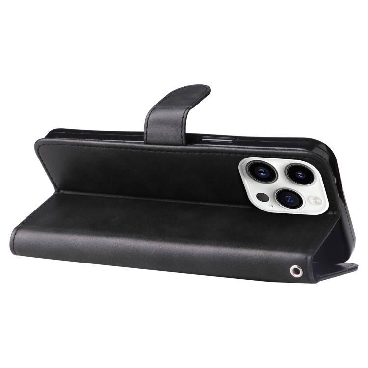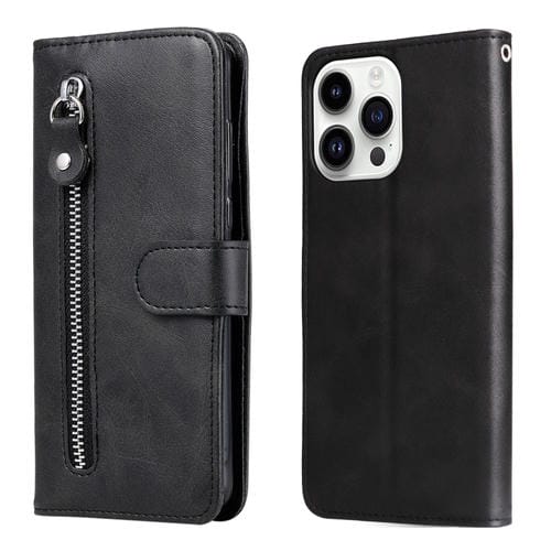 Funda para Teléfono iPhone 15 Pro Becerro Textura Cremallera Cuero (Negro)