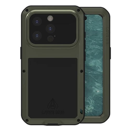 Caja para iPhone 15 Pro Love Mei a Prueba de Polvo Impermeable Metal a Prueba de Golpes (Verde Militar)