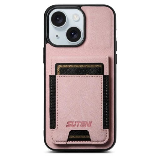 Pour iPhone 15 Suteni H03 Litchi Étui de téléphone en cuir avec porte-cartes (Rose)