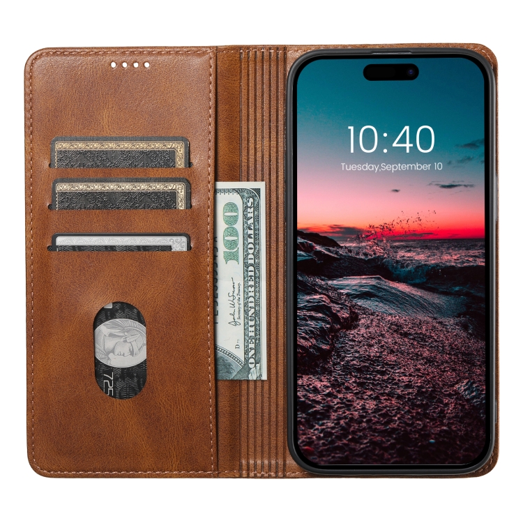 Funda de Cuero Suteni J02 para iPhone 15 con Billetera de Cera de Aceite (Marrón)