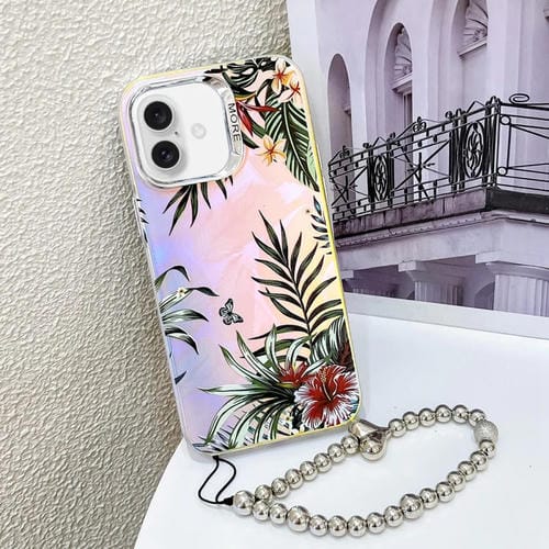 Funda para Teléfono iPhone 16 Flor Láser Galvanizada con Correa para Muñeca (Hojas Ah12)