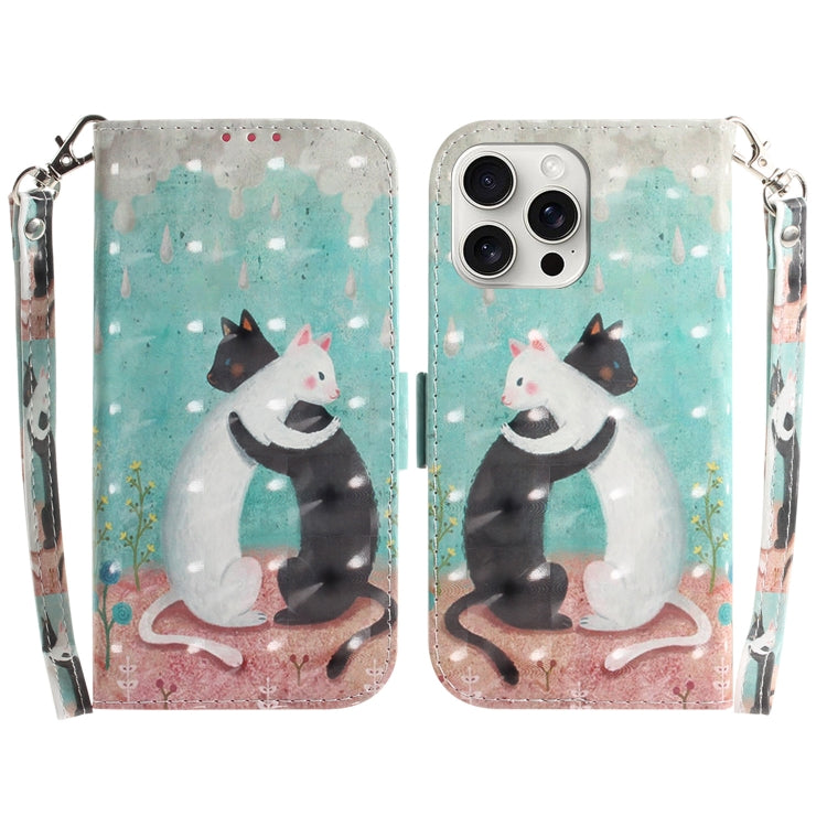 Funda de Teléfono iPhone 16 Pro Cuero con Tapa Horizontal Color 3D (Gato Blanco Negro)