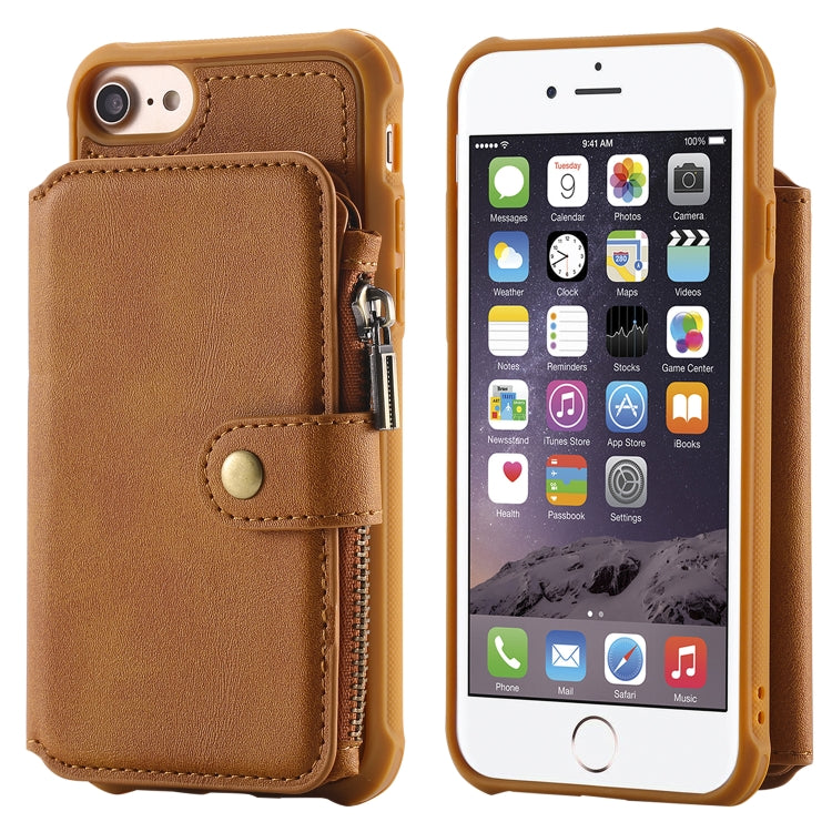 Funda Protectora para iPhone 6 con Cremallera Ranuras para Tarjetas Soporte Fotos Función Billetera (Marrón)