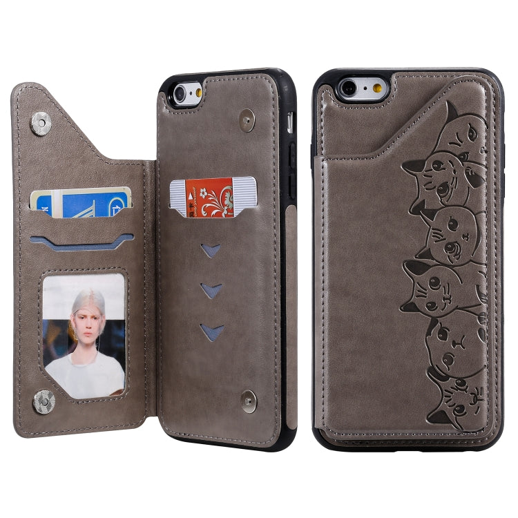Funda para iPhone 6 Plus Seis Gatos Estampado con Soporte Ranuras para Tarjetas y Marco de Fotos (Gris)