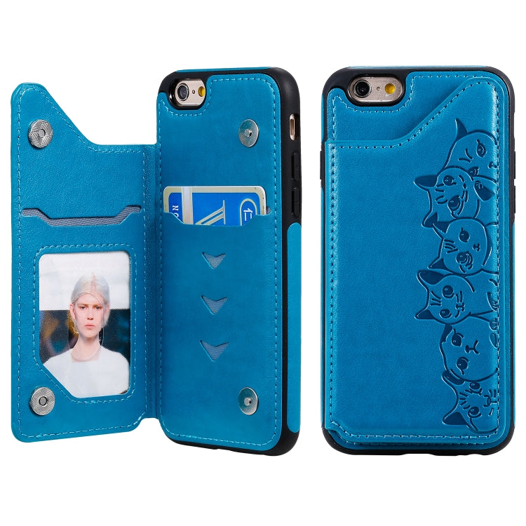 Funda Protectora Six Cats para iPhone 6 con Patrón en Relieve, Soporte, Ranuras para Tarjetas y Marco de Fotos (Azul)
