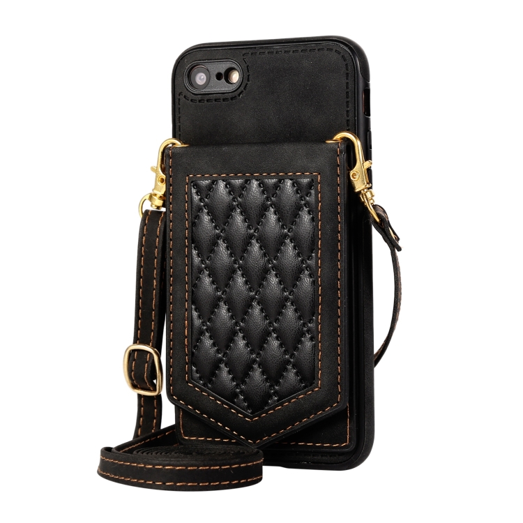 Funda para iPhone 6S / 6 Rhombic Texture Rfid con Cordón y Espejo (Negro)