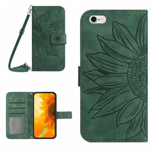 Funda de Cuero iPhone 6S Plus Skin Feel Sun Flower Flip con Cordón (Verde)