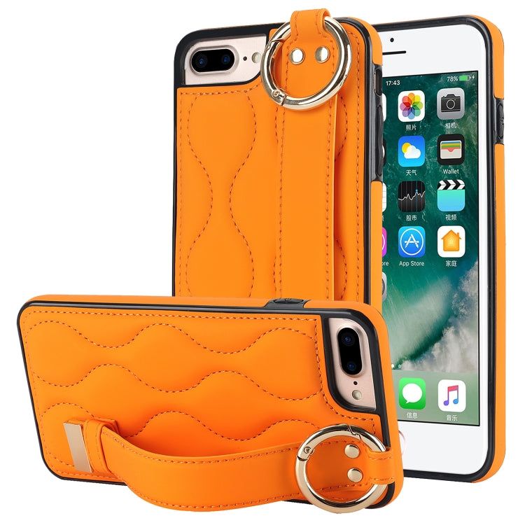 Estuche para teléfono iPhone 7 Plus / 8 Plus Pu con anillo cobertura total antideslizante con muñequera (Naranja)