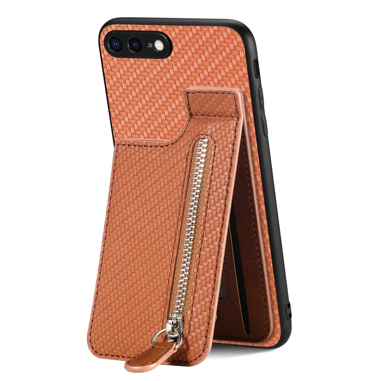 Funda de teléfono iPhone 7 Plus 8 Plus con cremallera vertical de fibra de carbono (Marrón)