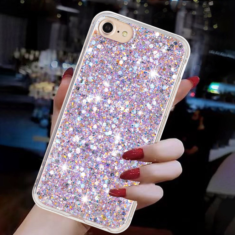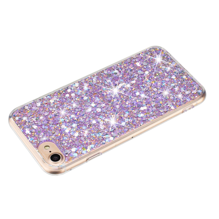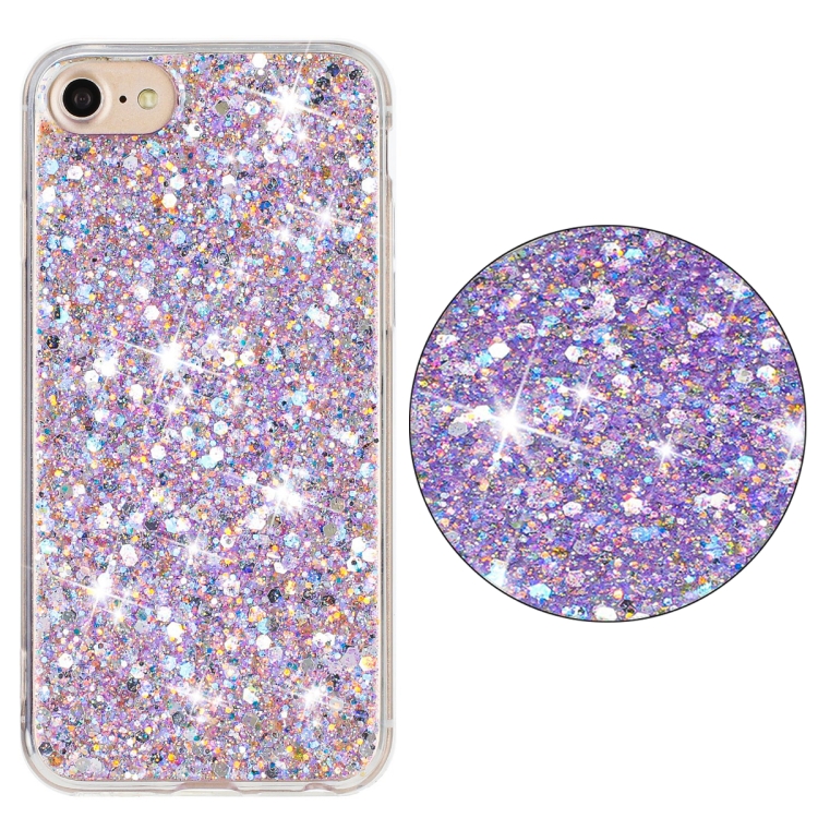 Funda de Teléfono TPU para iPhone 8/7 con Polvo de Brillo y Marco Transparente (Púrpura)