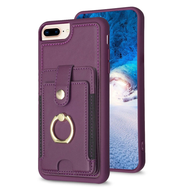 Funda para Teléfono Bf27 para iPhone 8 Plus y 7 Plus con Soporte para Tarjeta y Anillo de Metal (Púrpura Oscuro)