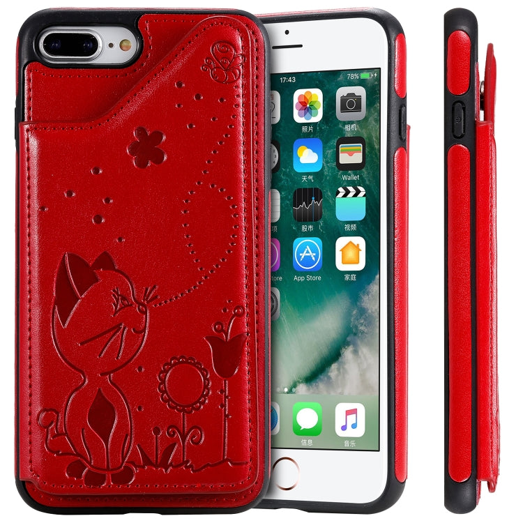 Estuche protector para iPhone 8 Plus y 7 Plus Cat Bee patrón en relieve a prueba de golpes con ranuras para tarjetas y marco de fotos (Rojo)