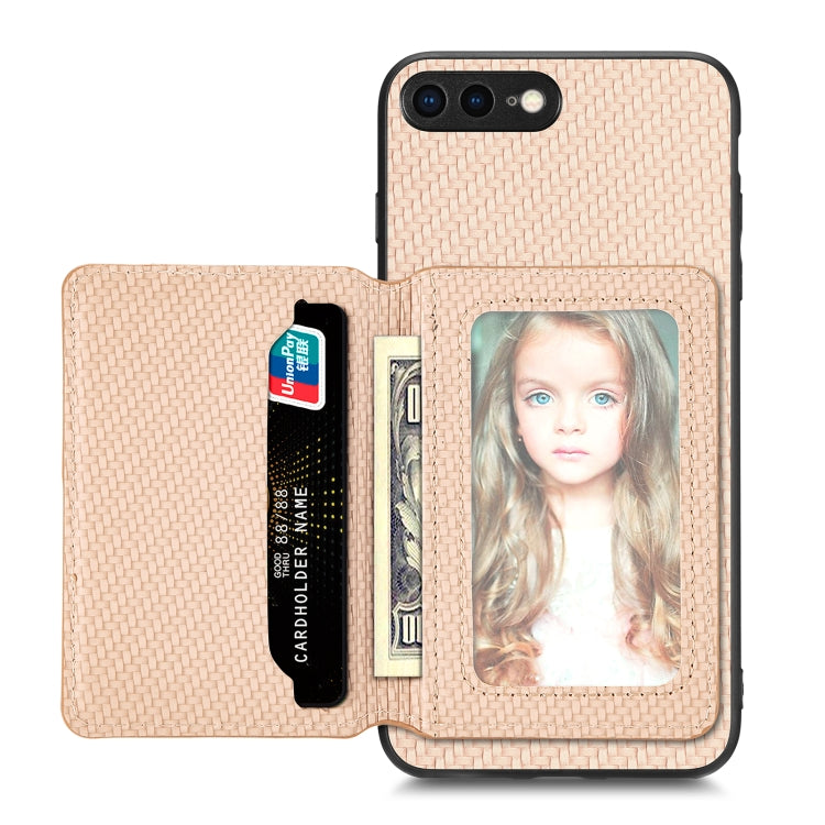 Funda de Teléfono para iPhone SE 2022/2020/7/8 con Bolsa de Tarjeta Magnética Fibra de Carbono (Caqui)