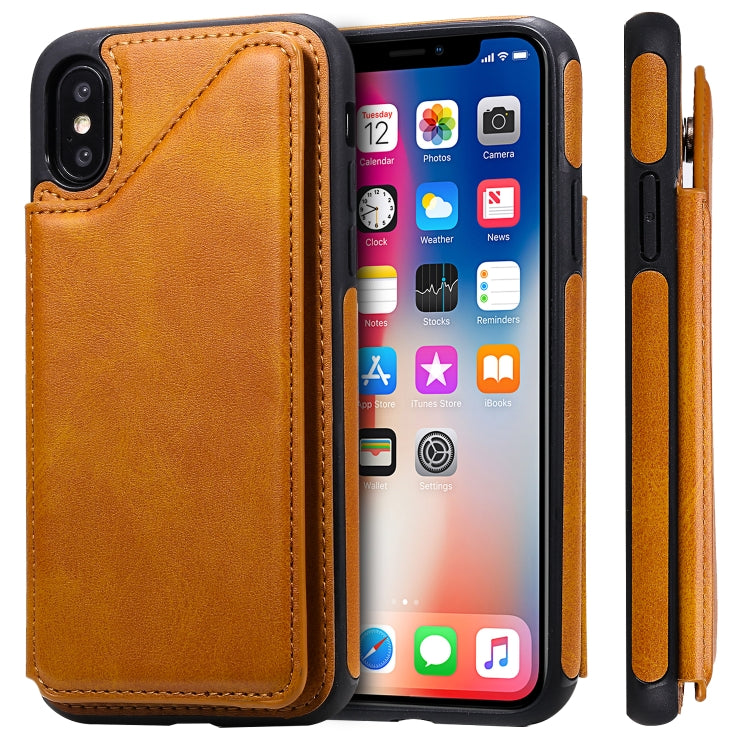 Funda Protectora para iPhone X Textura de Pantorrilla Soporte Ranuras para Tarjetas Marco (Marrón)