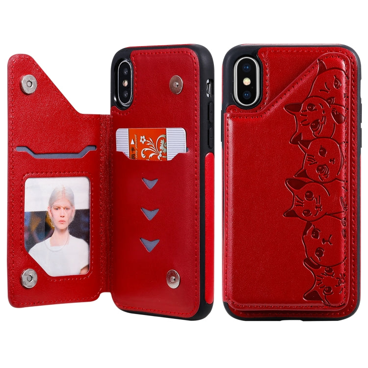 Pour iPhone X Étui de protection à motif en relief Six Cats avec support, fentes pour cartes et cadre photo (rouge)