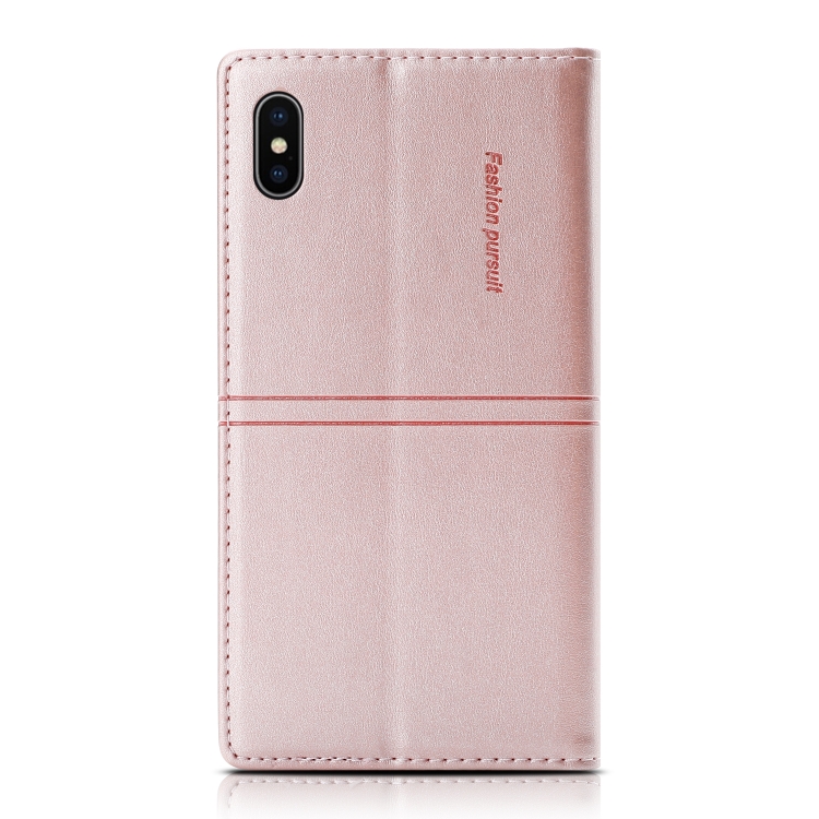 Funda para iPhone X Xs Dream Cuero PU Tapa Horizontal Soporte Ranura Tarjeta Billetera (Oro Rosa)