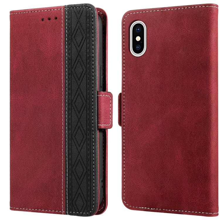 Estuche para iPhone X Xs de Cuero con Costura Magnética Rfid (Rojo)
