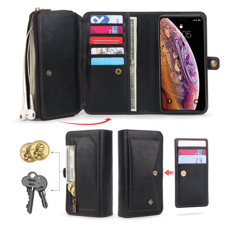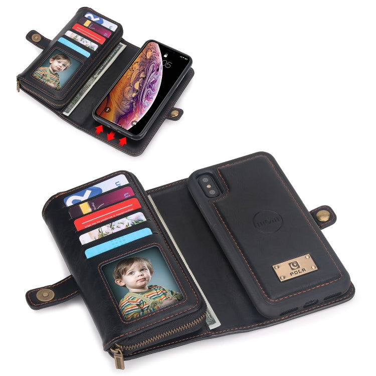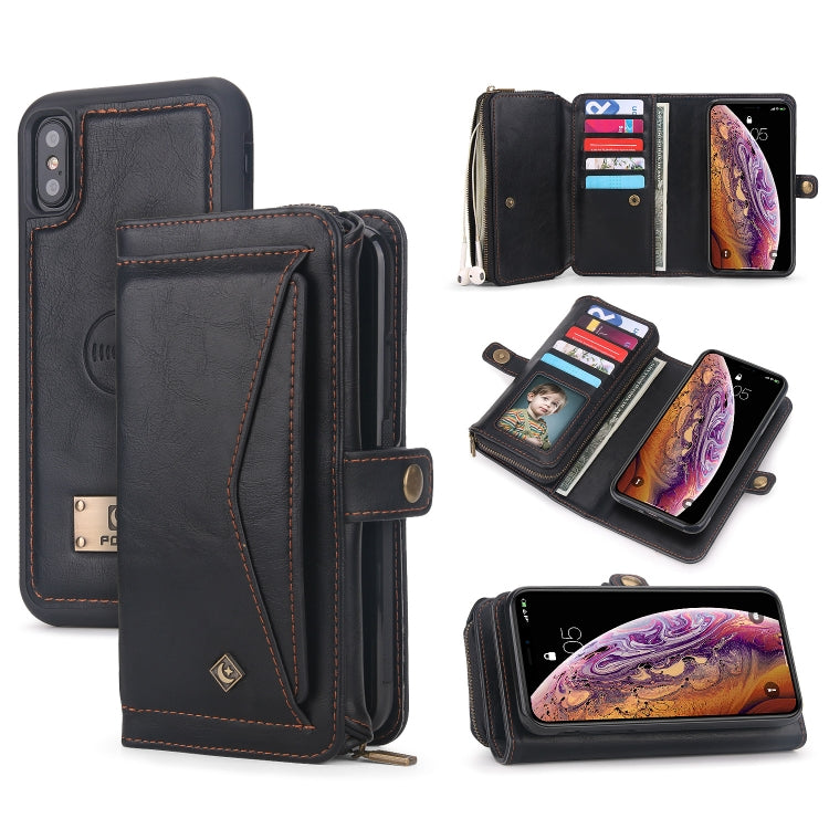 Funda para Teléfono iPhone X Xs Cuero con Billetera y Cremallera Multifuncional (Negro)