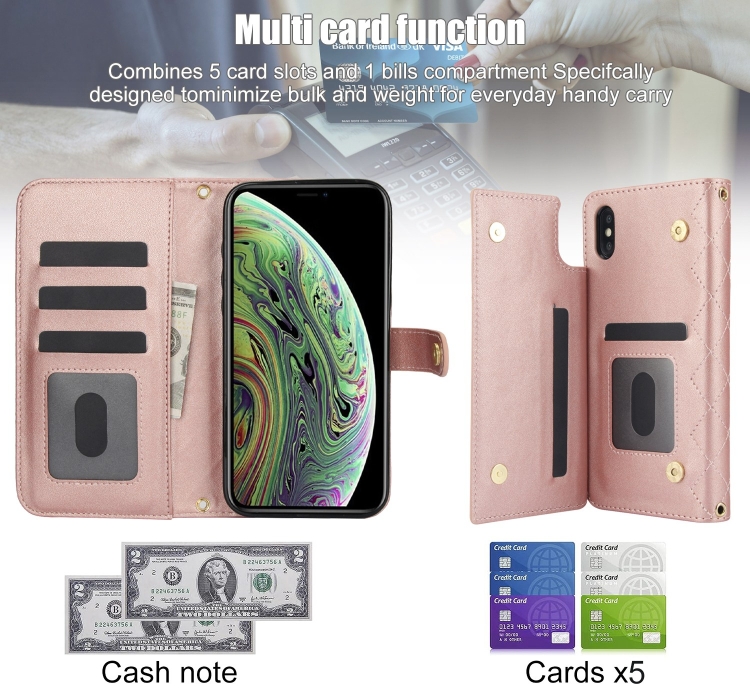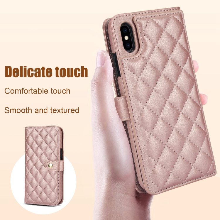 Funda para Teléfono iPhone Xr Crossbody Cuero Rómbico Multifunción (Oro Rosa)