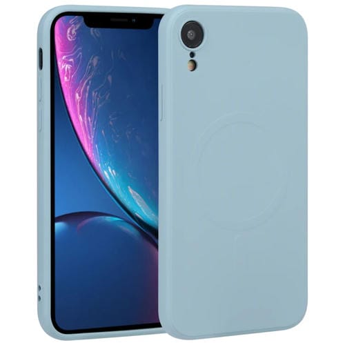 Estuche para Teléfono iPhone Xr Magsafe a Prueba de Golpes Cobertura Total Silicona Líquida (Azul Claro)