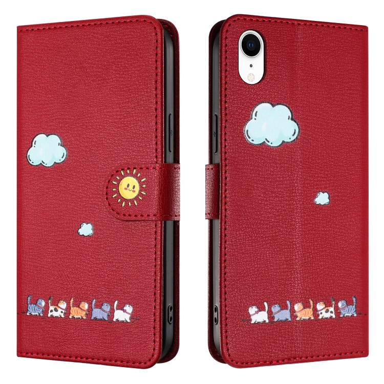 Funda de Cuero para Teléfono iPhone Xr con Gatos de Dibujos Animados (Rojo)
