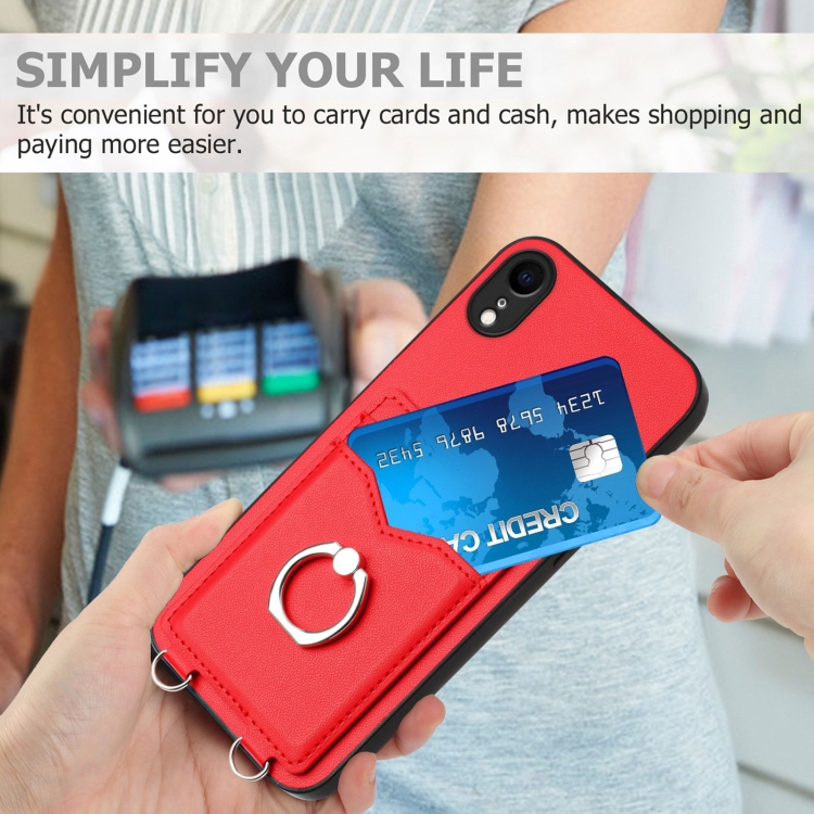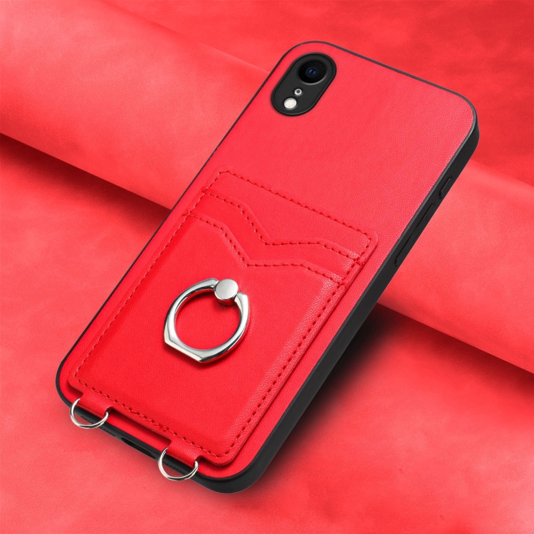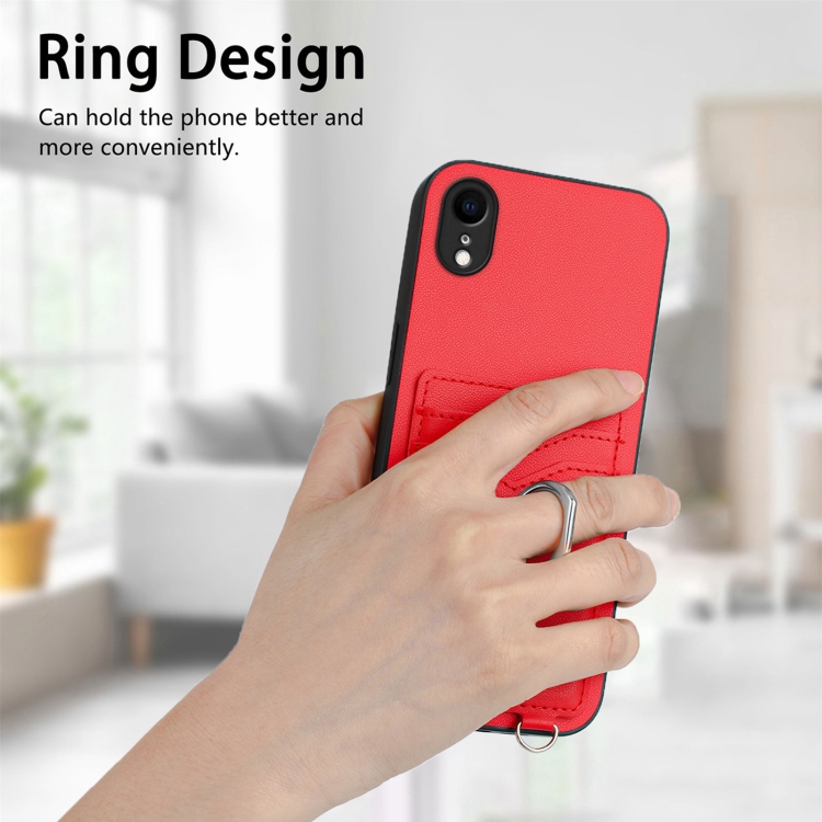 Estuche para Teléfono iPhone Xr R20 con Soporte para Tarjeta con Anillo (Rojo)