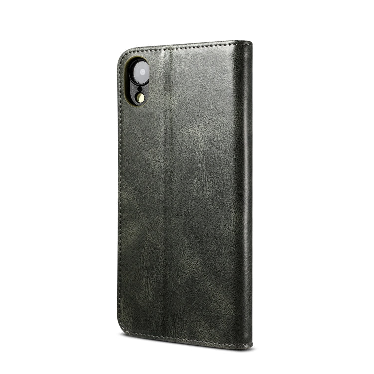 Funda de Cuero Crazy Horse para iPhone Xr con Tapa Horizontal y Ranuras para Tarjetas (Verde Oscuro)