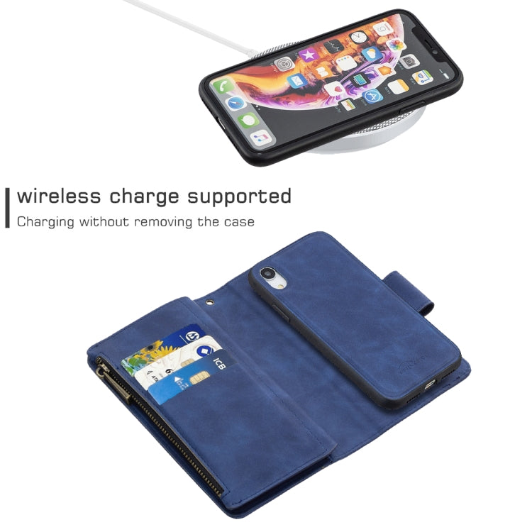 Funda para iPhone Xr Skin Feel Desmontable Cremallera Magnética Cuero de Pu Tapa Horizontal Ranuras Tarjetas Soporte Billetera Marco Fotos Cordón (Azul)